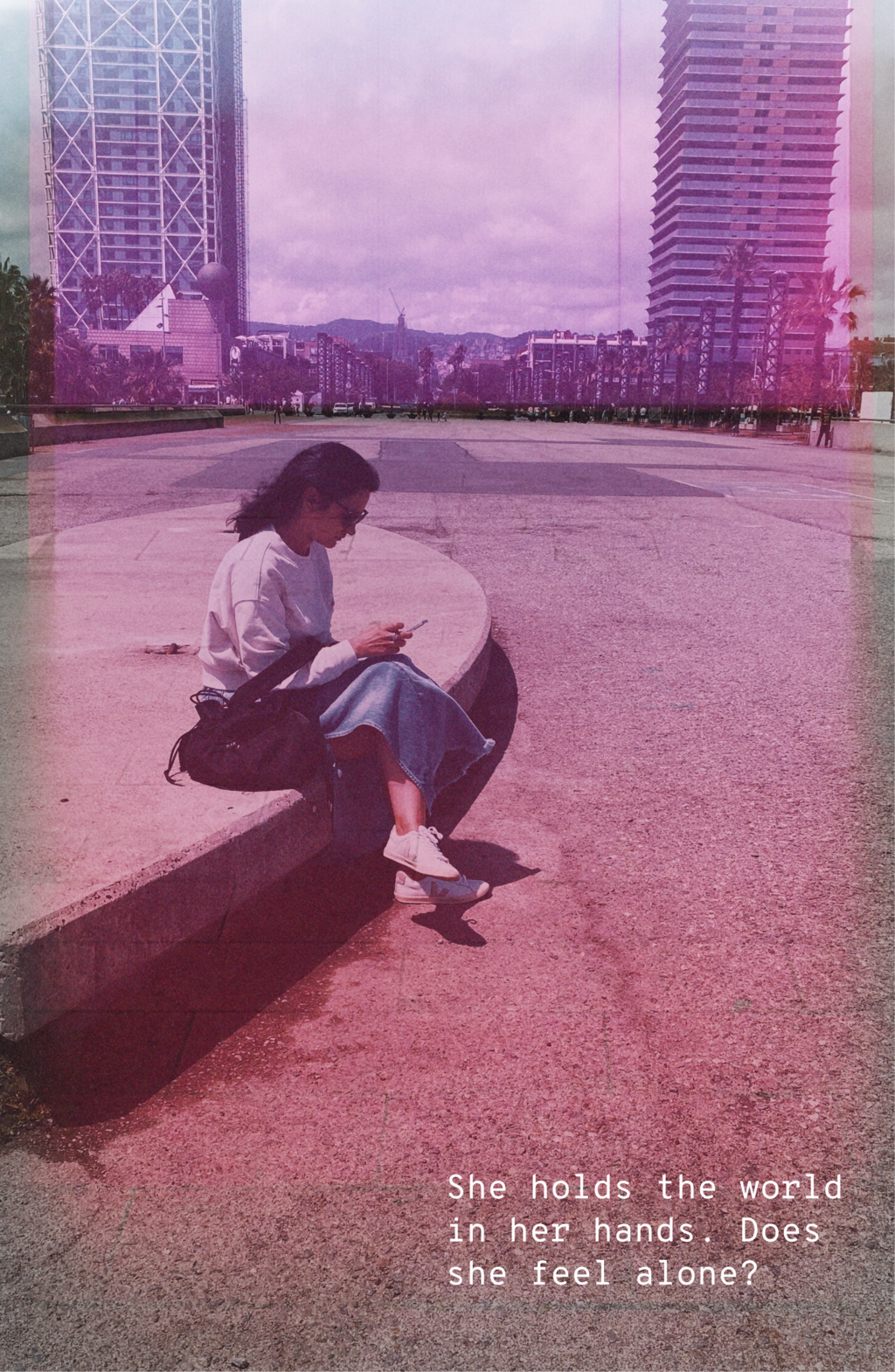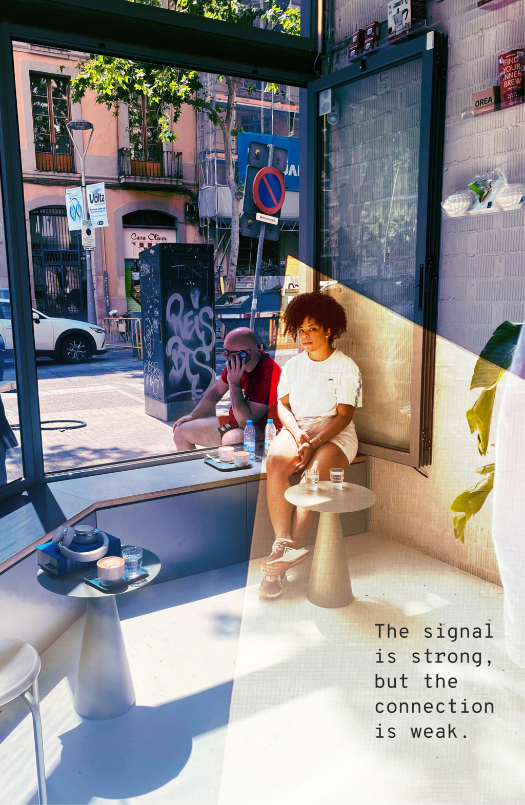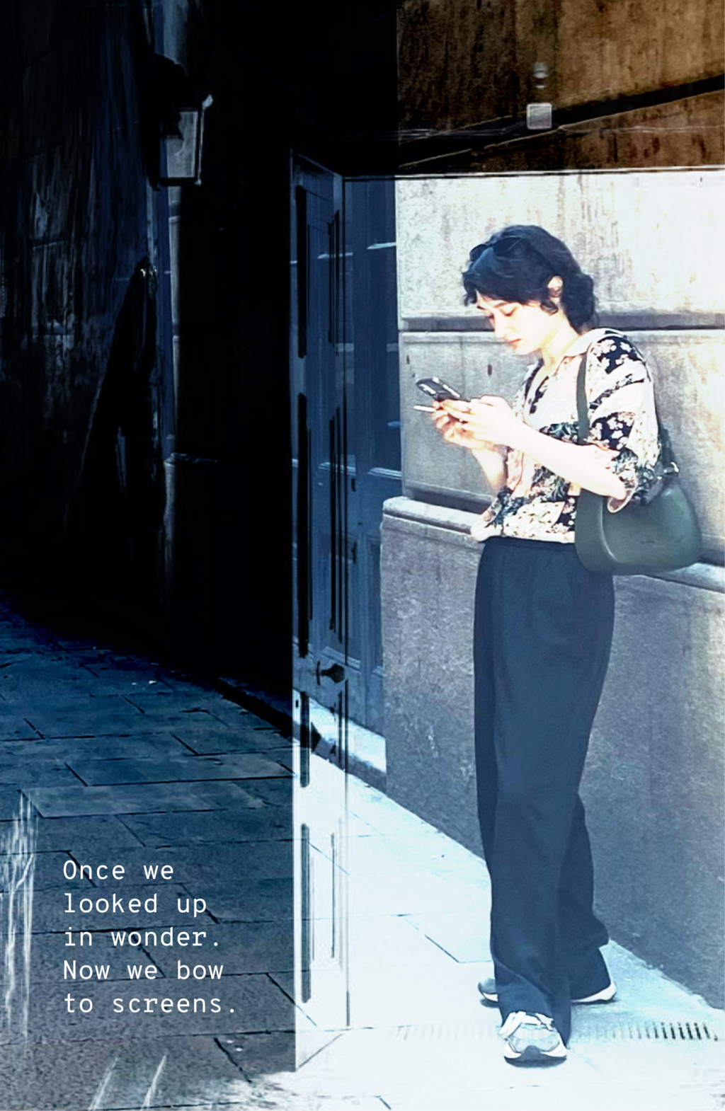 In this series of 20 double exposure photographs I invite the viewer to pause, to wonder, and to feel the tension between isolation and inner fullness. Our screens have become windows, but also walls. We scroll through life, watching it unfold through glass. Is this freedom or a silent trap? Productivity or addiction? What happens to the soul when the signal is strong, but the connection is weak?