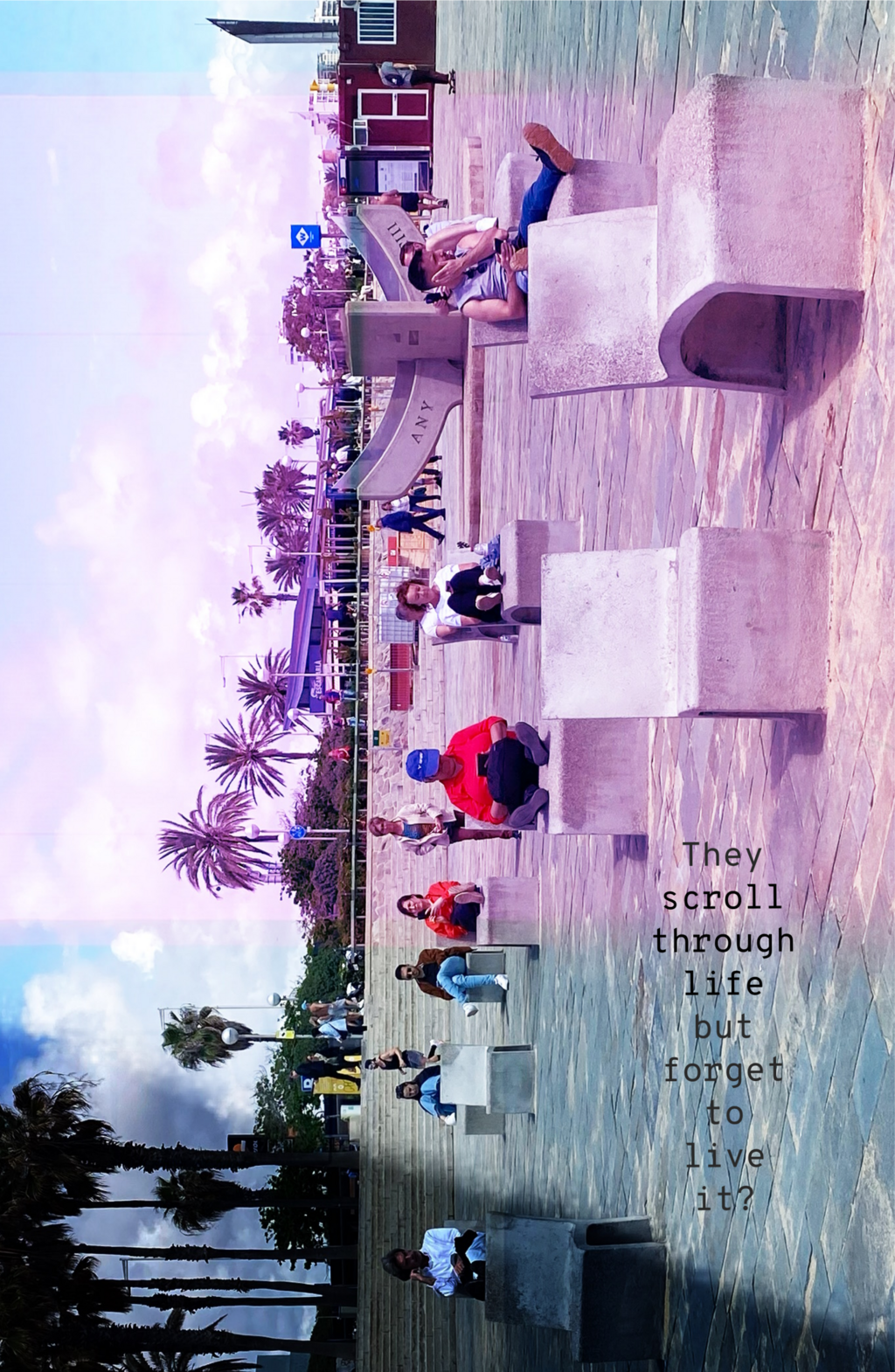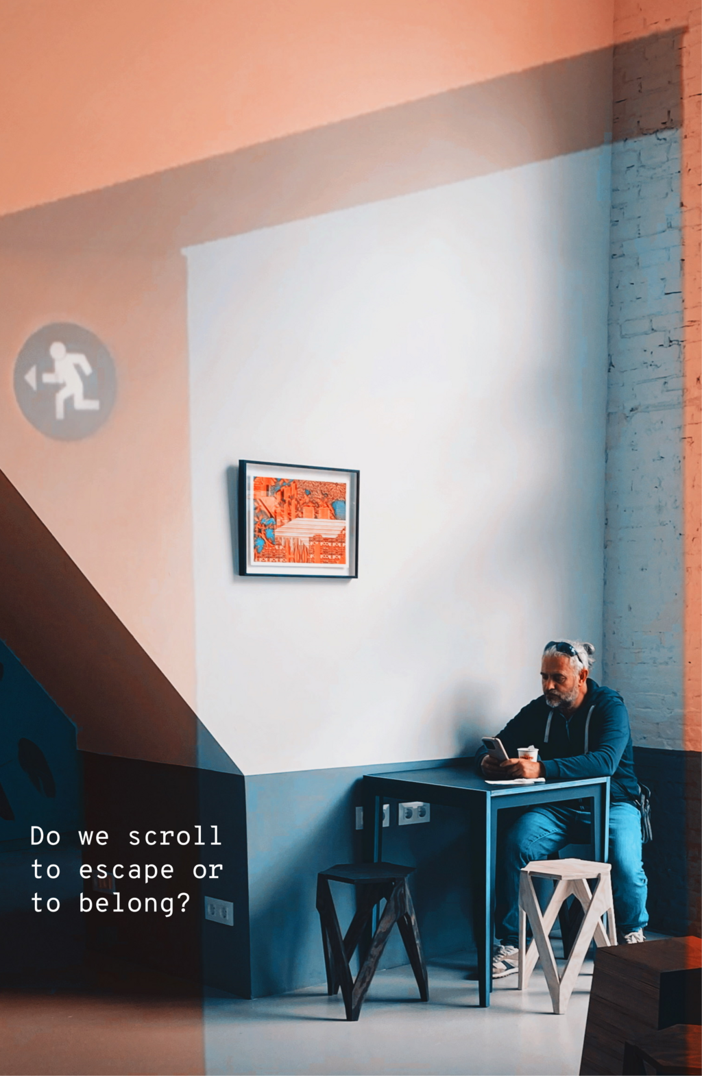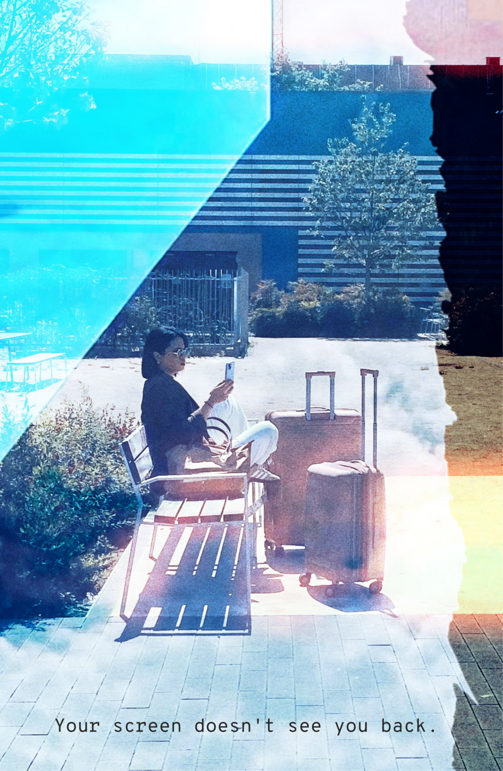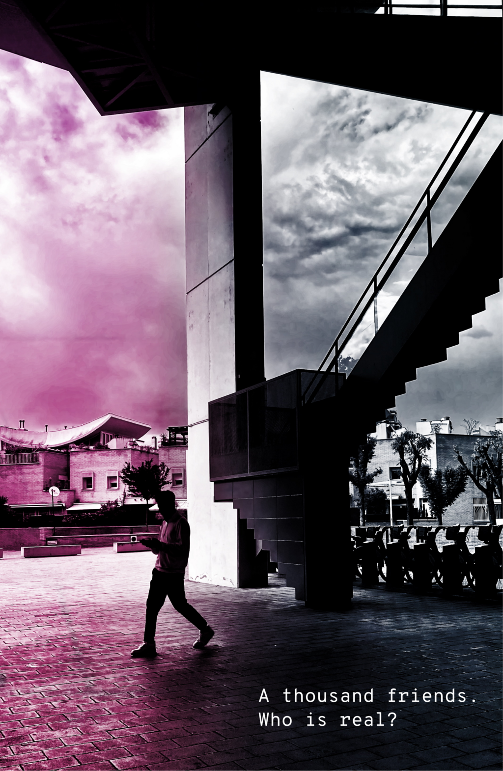In this series of 20 double exposure photographs I invite the viewer to pause, to wonder, and to feel the tension between isolation and inner fullness. Our screens have become windows, but also walls. We scroll through life, watching it unfold through glass. Is this freedom or a silent trap? Productivity or addiction? What happens to the soul when the signal is strong, but the connection is weak?